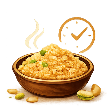 Unlike market Panjeeri, we use Zero Wheat Flour (Atta) or Semolina. You pay for nuts, not powder.
