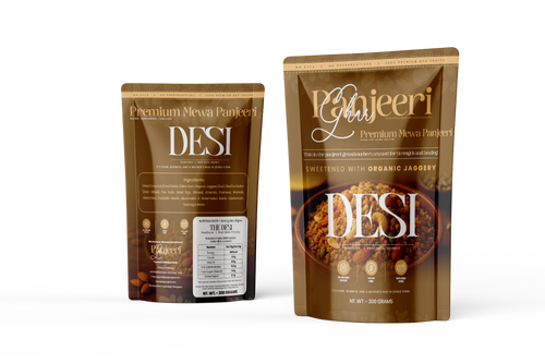 Desi Panjeeri: A traditional blend sweetened with Jaggery (Gur) for authentic taste and wholesome energy.